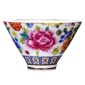 2 Pcs 3.4 oz Traditional Chinese Ceramic Teacup Peony Japanese Tea Cups