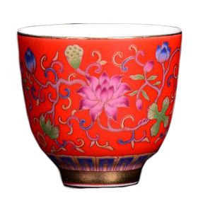 2.5 oz Red Handmade Enamel Painted Porcelain Kungfu Teacup Chinese Tea Cup Wine Cup