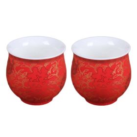 2 Pcs 3.4 oz Chinese Porcelain Teacup Red Kongfu Tea Cups Chinese Wedding Double Happiness Wine Cup
