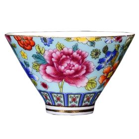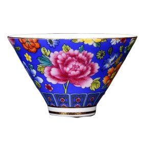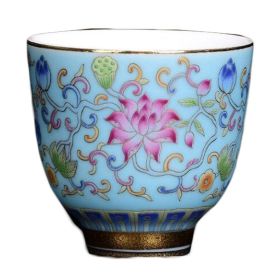 2.5 oz Handmade Enamel Painted Porcelain Tea Cup Chinese Kungfu Teacup Flower Wine Cup, Blue