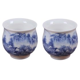 2 Pcs 3.4 oz Chinese Teacup Ceramic Kungfu Tea Cup Wine Cup Set Landscape Painting