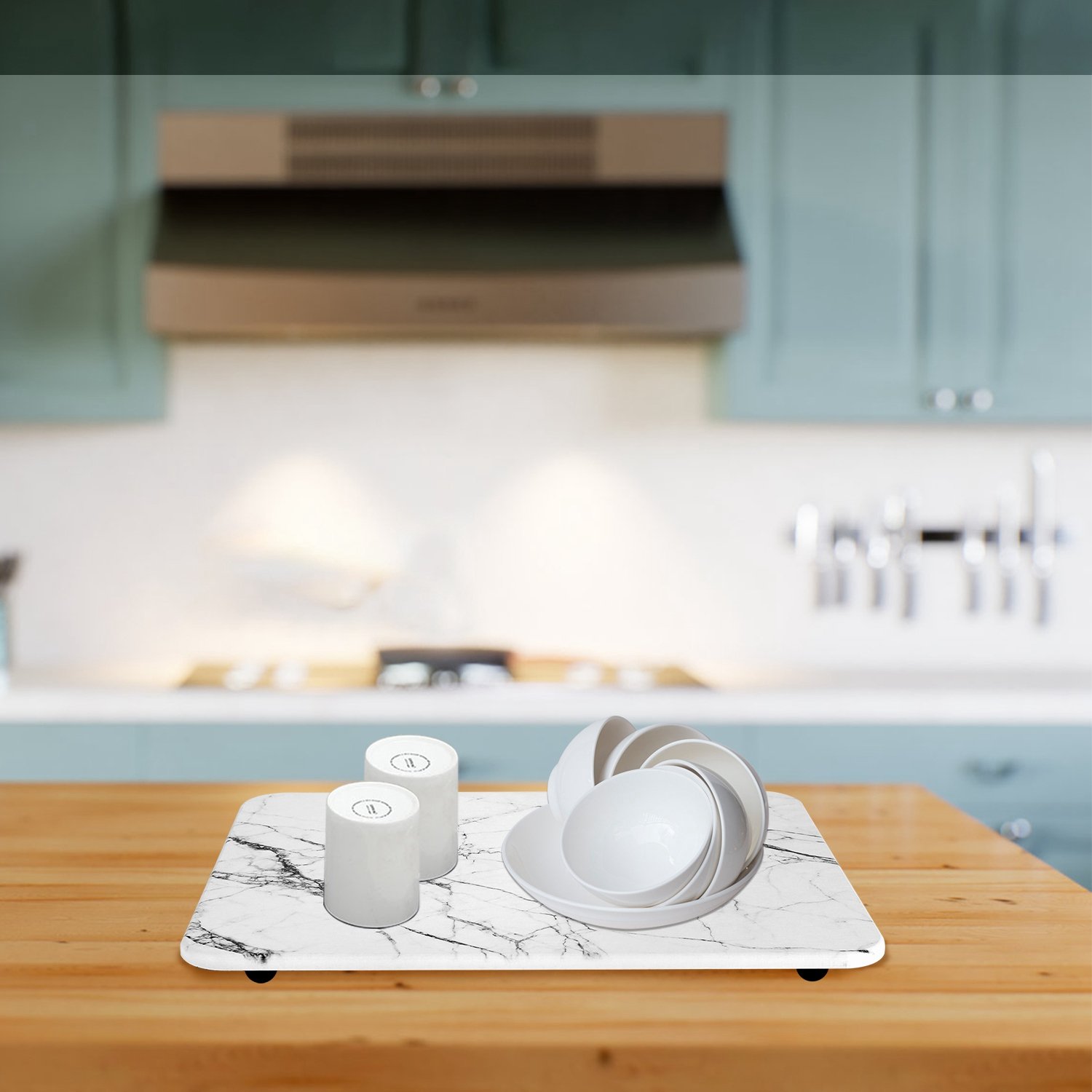 Constructed with premium diatomaceous earth with exceptional absorbency, our stone dish drying mat is able to absorb residual water on the tableware and quickly evaporate water from the surface in about 30S, keeping the sink area clean and tidy. Come with 2Pcs in package, non-slip and heat resistant up to 1000℃/1832℉, widely used for dish rack mat, stone bath mat, hot pot pad, pet feeding mat etc.. Feature marble texture and 11.81x15.75in large size, suitable for most kitchen ware and tableware. Easy to clean. An considerate gift for wife, girlfriend and mother!