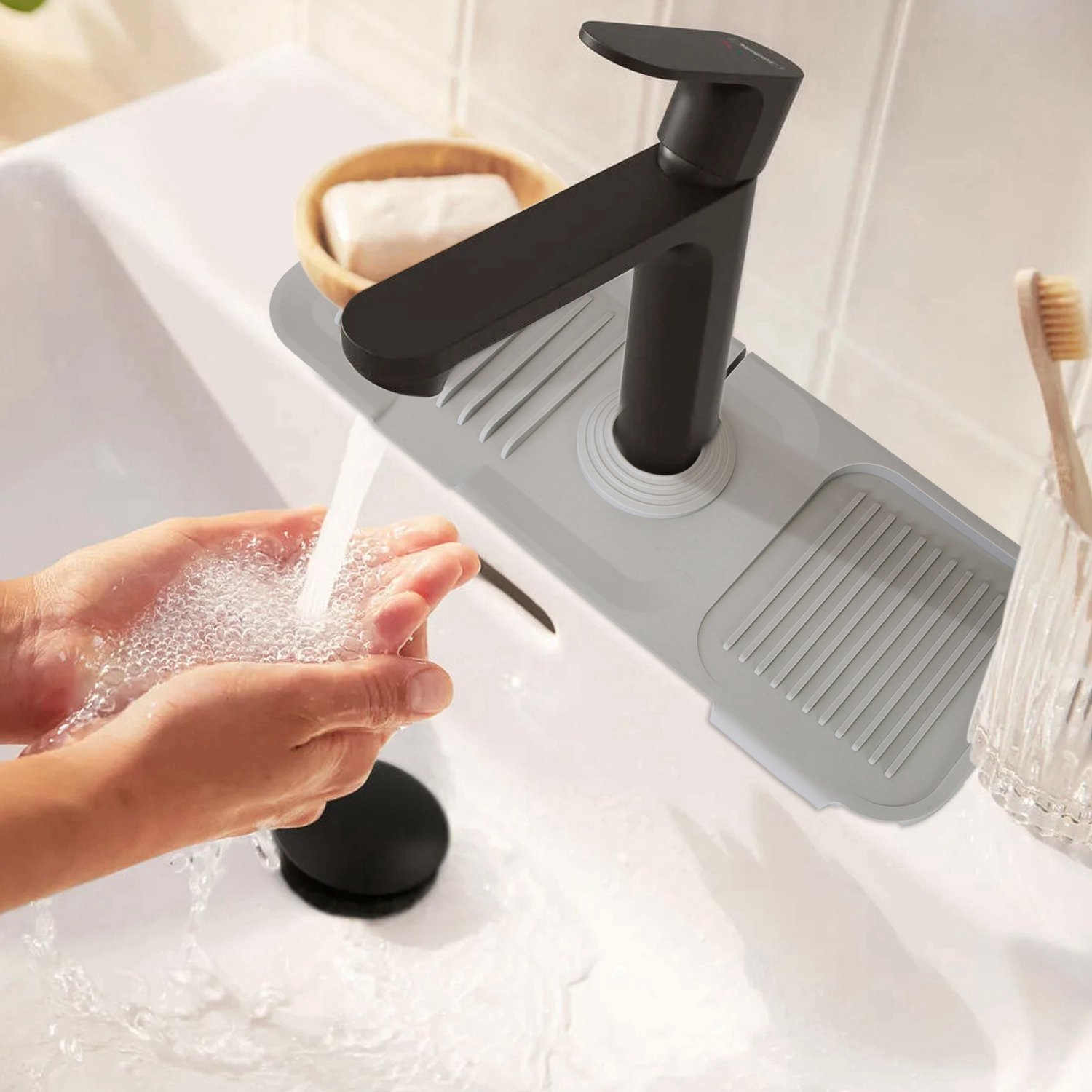 Faucet Splash Mat 14.56x5.51in Silicone Sink Drying Mat Water Drip Catching Tray Water Drainage Pad Sponge Soap Holder for Kitchen Bathroom Sink Fauce
