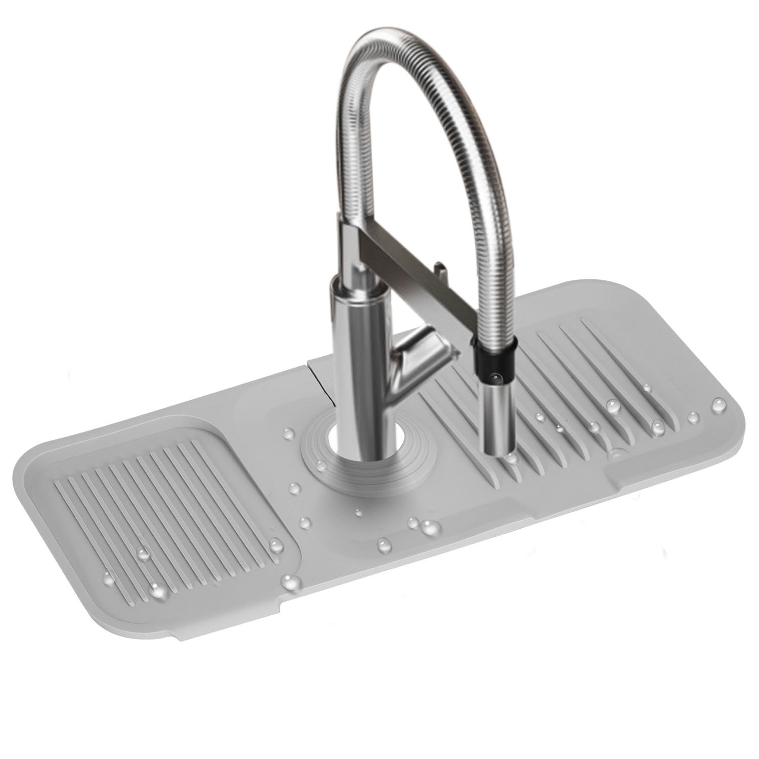 Home > Faucet Splash Mat 14.56x5.51in Silicone Sink Drying Mat Water Drip Catching Tray Water Drainage Pad Sponge Soap Holder for Kitchen Bathroom Sink Fauce