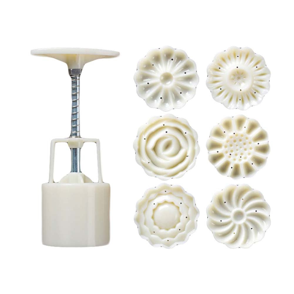 Color and style: as picture shows. Creative and simple design, easy to handmade baked goods. Hand press handle with a spring make it smooth and simple to get the perfect shape. To make beautiful desserts, comfort food, and Lunar Festival moon cakes with these molds. Each stamp can be functioned as a cookie cutter, which is also perfect for making pumpkin cakes, cookies and different kinds of desserts. Suits for Kitchen, baking room, hotel and all kinds of party, especially for those who love traditional moon cakes. Easy care: After using, please dry it up and place it in a cool position. Don't use it in ovens or put in boiled water. Good molds for home baking.