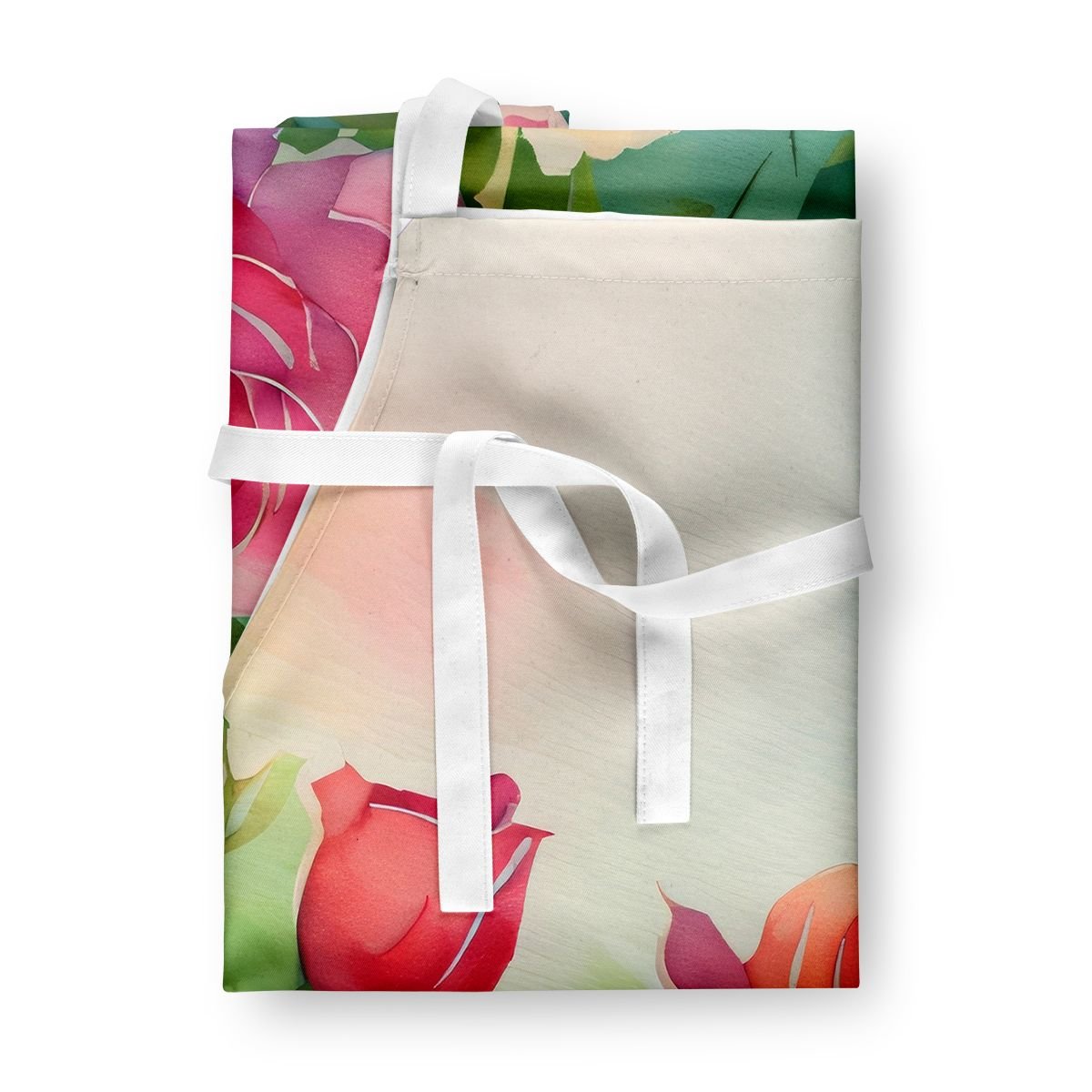 Roses in Watercolor Apron Cooking Kitchen Server Baking Crafts Gardening for Adult Women Men, Unisex, Large, Multicolor